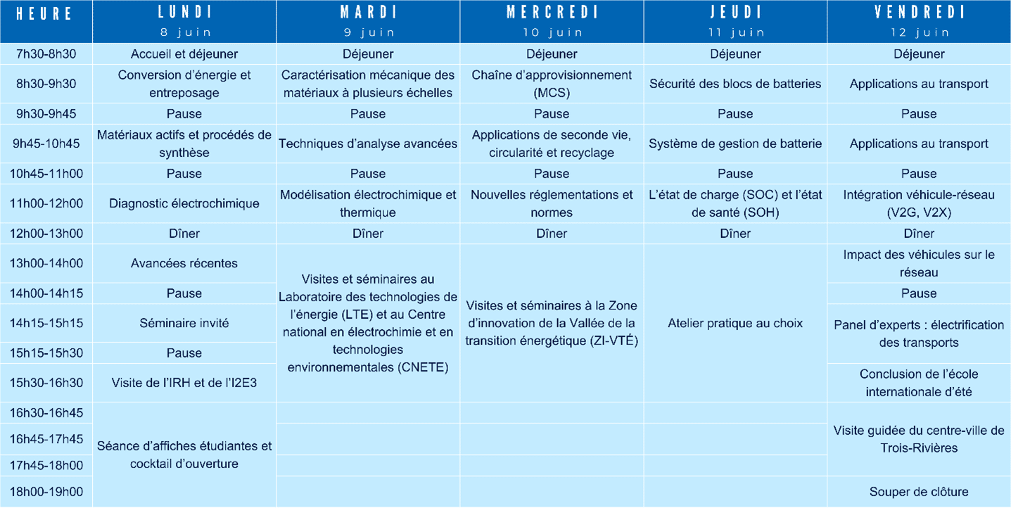 L’école internationale d’été permet d’obtenir un crédit universitaire via le cours NRG3507 – Batteries et électrification des transports. Après réception de votre formulaire d’inscription, nous validerons votre candidature (selon les places disponibles) et vous pourrez ajouter ce cours à votre formation selon les procédures suivantes.