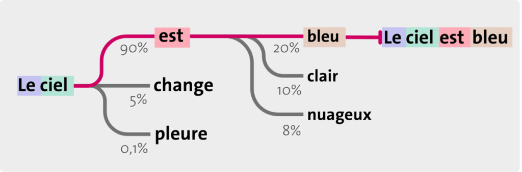« Un LLM est large, car il possède énormément de paramètres (de l’ordre de plusieurs milliards), qui sont autant de pièces d’information. C’est un modèle, car il s’agit d’un réseau de neurones entraîné sur une grande quantité de textes pour produire des tâches non spécifiques. Il est linguistique, car il reproduit la syntaxe et la sémantique du langage naturel humain en prédisant la suite probable pour une certaine entrée. Cela lui permet également d’avoir une « connaissance » générale sur la base des textes d’entraînement. »